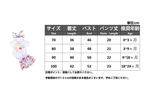 サイズ 80 --- 着丈 38cm" --- バスト 24cm*2" --- ウエスト 18cm" --- パンツ丈 21cm" --- 推奨年齢 3ヶ月-9ヶ月