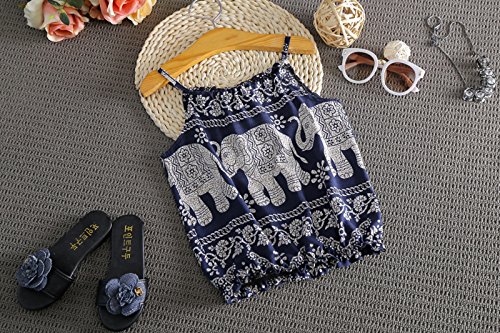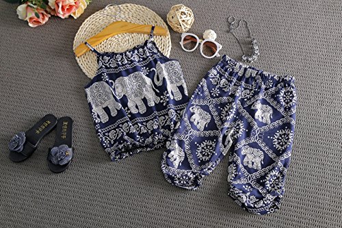 (ラランドリー) laraandlory 夏用 女の子 紺色 袖なし 2点セット 象パターン トップス+パンツ (9 /3-4歳)