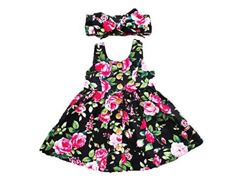 (ラランドリー) laraandlory 女の子 夏 ベビー服 袖なし 花柄 カシュクール ワンピース(ヘアバンド付き) (120/3-4歳, ブラック)