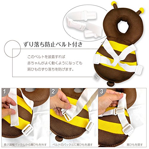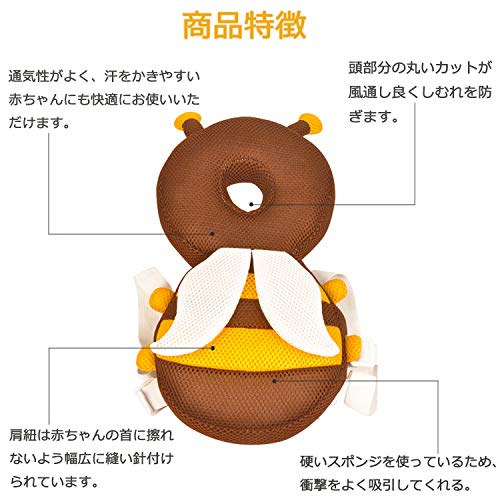 ベビーヘッドガード ごっつん防止 赤ちゃん転倒防止 頭ガード 安全頭保護メッシュ 頭守る 怪我防止 ベビー用品 誕生日 出産祝い 適用年齢5ヶ月-18ヶ月 (ミツバチ夏) …