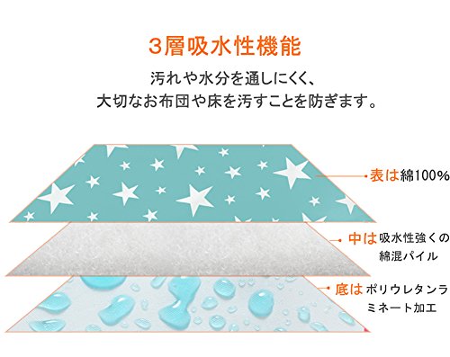 - 【しっかり防水対策】3層吸水性機能、中は吸水性強くの綿混パイル、底はポリウレタンラミネート防水加工なので、水分が下まで浸透しません。おむつ替え以外でも、床・テーブル・お洋服などを汚したくないというシーンでお使い頂けます。