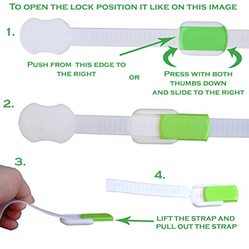 - ✓ Our Child Safety Lock are Flexible & Adjustable Length Straps and we use 3M Adhesive for strong hold and easy removal without residue or unwanted marks. Easy to install and no tools required just peel 3M tape cover and attach to any surface in seconds.