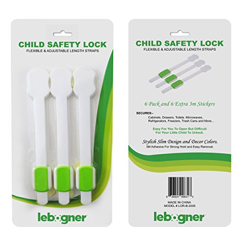 Adjustable Child Safety Locks By Lebogner - Flexible Baby Safety Strap, Multi Use Toddler Proof Latches For Cabinets And More, Child Security Lock, 6 Pack With Reusable 6 Extra 3M Adhesive Included [並行輸入品]