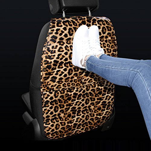 lewu キックガード カー シート 保護 自動車用 カバー 傷 汚れ防止 収納 ポケット 付き 汎用 (豹柄)