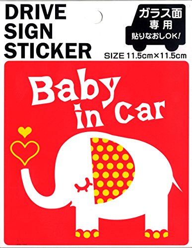 ドライブサインステッカーBABYアニマル角 (レッド ゾウ)+マグネット