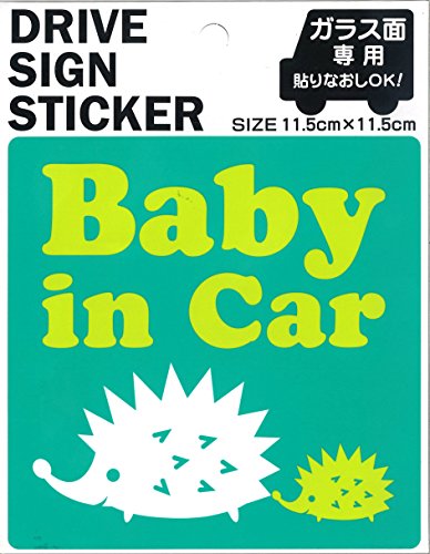ドライブサインステッカーBABYアニマル角 (グリーン ハリネズミ)+マグネット