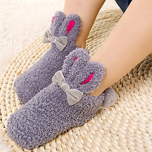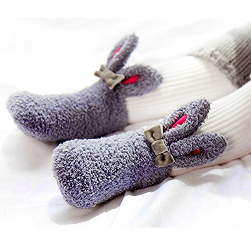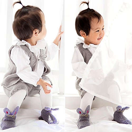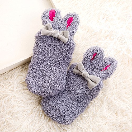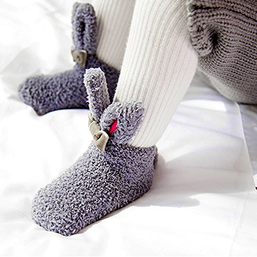 Ligangam キッズ靴下 ソックス ミドル丈 靴下 ミドルソックス 滑り止め 子供 赤ちゃん 3D立体 ウサギ お姫様 蝶結び もこもこ ベビー 幼児用 男の子 女の子 暖かい ガールズ ボーイズ 柔らかい 0-3歳に適用 秋冬春 可愛い 結婚式 通学 入園式 入学式 ソフトフィット 吸湿 抗菌〈2足組〉 (グレー, S)