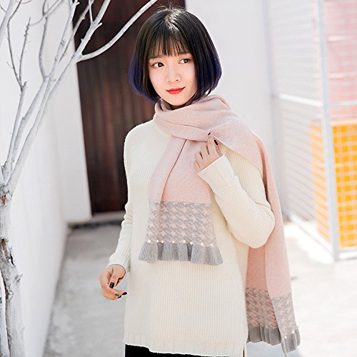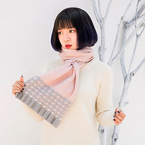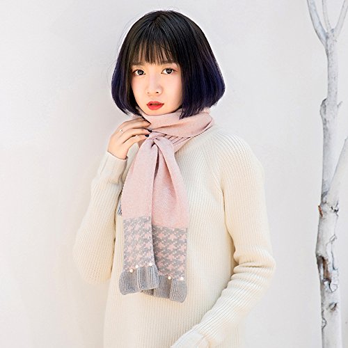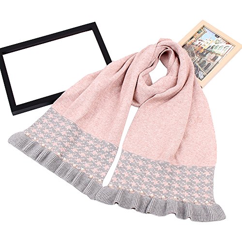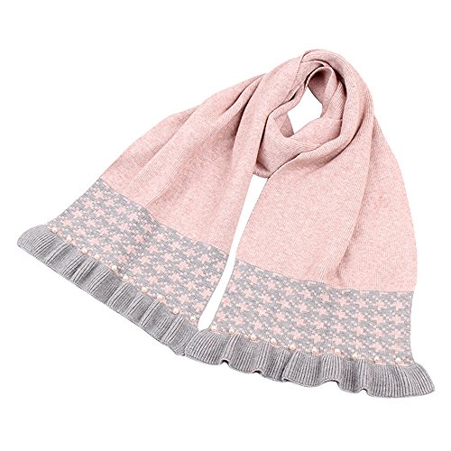 Ligangam マフラー すごく可愛い 子供用 女の子 女子 キッズマフラー 高校生 中学生 小学生 女児 レディース 素敵 キレイ オシャレ 優雅 ファッション 韓国風 パール付き 層状 ニット 秋冬 新型 暖かい ウォーム 防寒保温 ピンク グレー 2色選択 (ピンク)