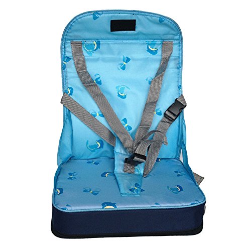 lily's JP home ベビー用 食事チェアクッション 撥水 背もたれ付 椅子クッション 赤ちゃん用 折りたたみ こどもクッション 椅子クッション 赤ちゃん用 キッズ用 ベビー用 ポーチ付き折りたたみ 持ち運び (ブルー)