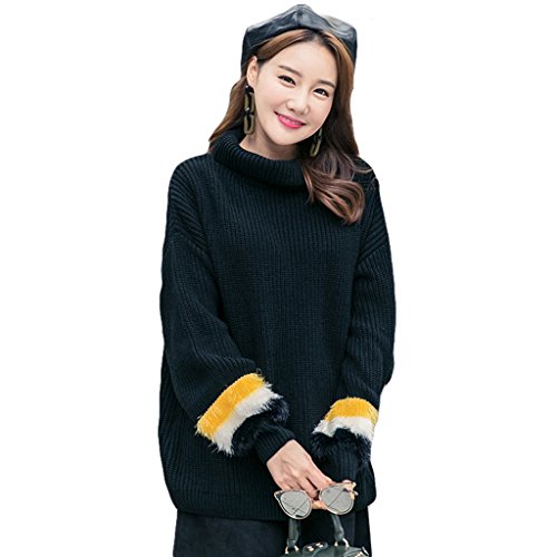 lime 女の子の秋と冬のレジャー黒の長袖ニットトップスルーズな暖かいタートルネックを保つ(プラスサイズ) ( 色 : ブラック , サイズ さいず : Xl xl )