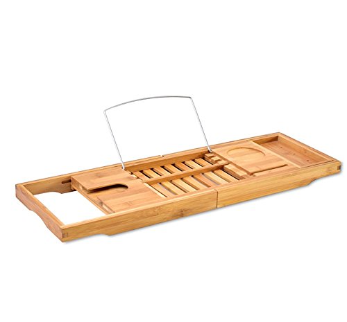 lool 半身浴に バスタブトレー バスタブラック バステーブル ブックスタンド付き お風呂 伸縮式 竹製