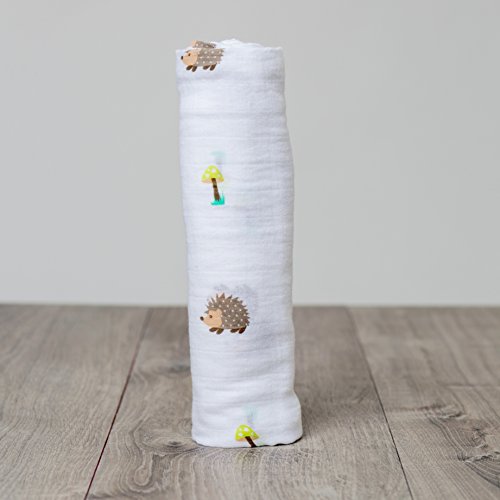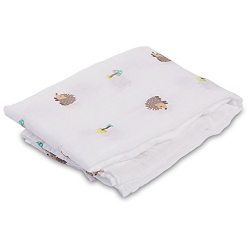 - lulujo Baby Cotton Muslin Swaddling Blanket, Happy Hedgehog, 47 x 47