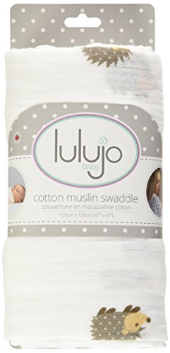 lulujo Baby Cotton Muslin Swaddling Blanket, Happy Hedgehog, 47 x 47 by lulujo Baby