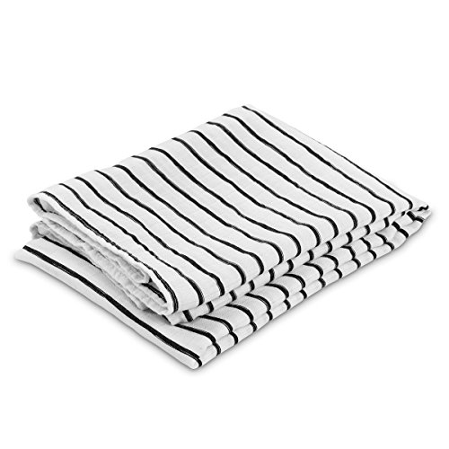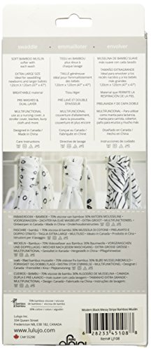 Soft muslin blanket ideal for swaddling newborns and larger babies;47 x 47; 70% bamboo sourced rayon, 30% Cotton;Simple, modern stripe design in black and white;Pre-washed and dual layer, is softer with each use;Babies love the silky soft texture and moms love the versatility; use as a nursing cover, stroller cover, blanket, burp cloth and more;bamboo muslin swaddling blanket;47x47;super soft and breathable;multi-functional