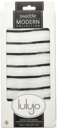 - lulujo Baby Rayon Sourced Bamboo Muslin Swaddling Blanket, Black Messy Stripe, 47 x 47