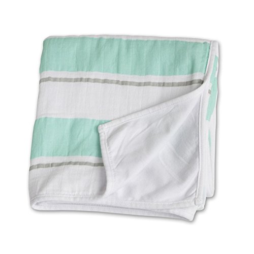 Childhood Blanket is made with two layers of cozy fabric; dual layer muslin in bold stripes and soft white jersey;38 x 38; 100% cotton;Bold aqua stripes and thin grey stripes on front; solid white on back;Soft enough for newborns and large enough to last well into childhood;These beautiful colors and simple, clean designs represent the feeling at the core of the lulujo brand; comfort, cozy, classic;100% cotton;38x38;dual layer muslin and cotton jersey;great for newborns and toddlers too!