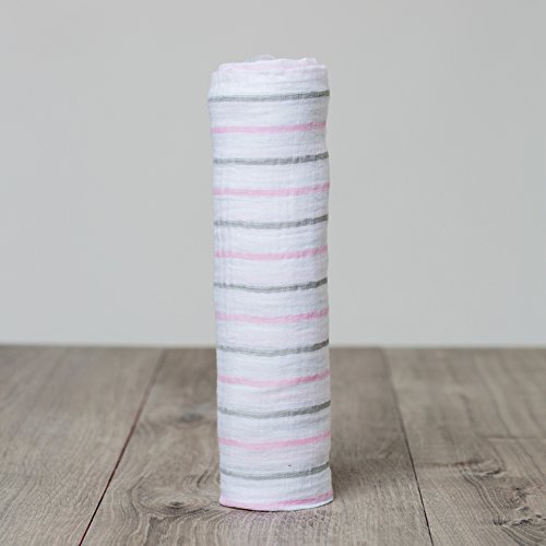 - lulujo Baby Cotton Muslin Swaddling Blanket, Pink Messy Stripe, 47 x 47