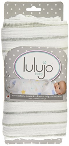 lulujo Baby Cotton Muslin Swaddling Blanket, Grey Messy Stripe, 47 x 47 by lulujo Baby