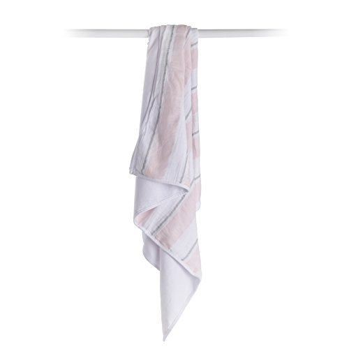 Childhood Blanket is made with two layers of cozy fabric; dual layer muslin in bold stripes and soft white jersey, 38" x 38"; 100% cotton, Bold pink stripes and thin grey stripes on front; solid white on back, Soft enough for newborns and large enough to last well into childhood, These beautiful colors and simple, clean designs represent the feeling at the core of the lulujo brand; comfort, cozy, classic