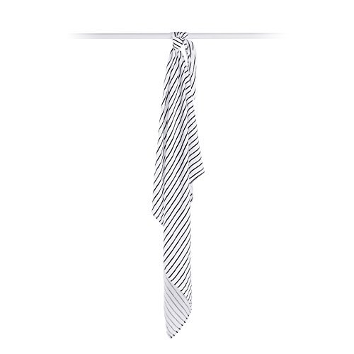 Soft muslin blanket ideal for swaddling newborns and larger babies;47 x 47; 70% bamboo sourced rayon, 30% Cotton;Simple, modern stripe design in black and white;Pre-washed and dual layer, is softer with each use;Babies love the silky soft texture and moms love the versatility; use as a nursing cover, stroller cover, blanket, burp cloth and more