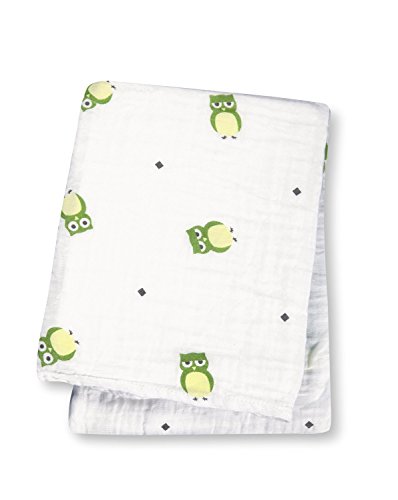 47 x 47-Inch muslin cotton swaddling blanket is white with a cute and colorful green owl print. Soft and breathable. Use to swaddle, use as a blanket, a nursing cover, a change mat, stroller cover, and more. Pre-washed and dual layer. 100% cotton (120cm x 120cm). Lulujo' s dedicated and experienced design team is committed to creating durable, functional, and environmentally conscious products that safely meet the needs of babies and parents.