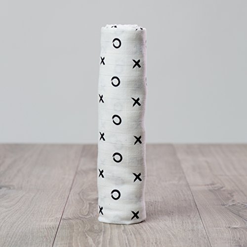 Soft muslin blanket ideal for swaddling newborns and larger babies;28 x 28;Simple, modern X and O design in black and white;Pre-washed and dual layer, is softer with each use;Babies love the silky soft texture and moms love the versatility; use as a nursing cover, stroller cover, blanket, burp cloth and more;bamboo muslin swaddling blanket;47x47;super soft and breathable;multi-functional