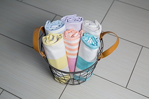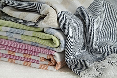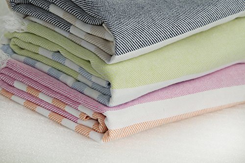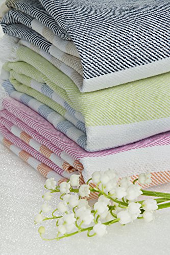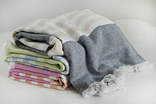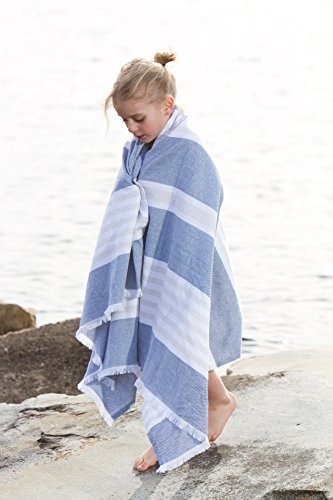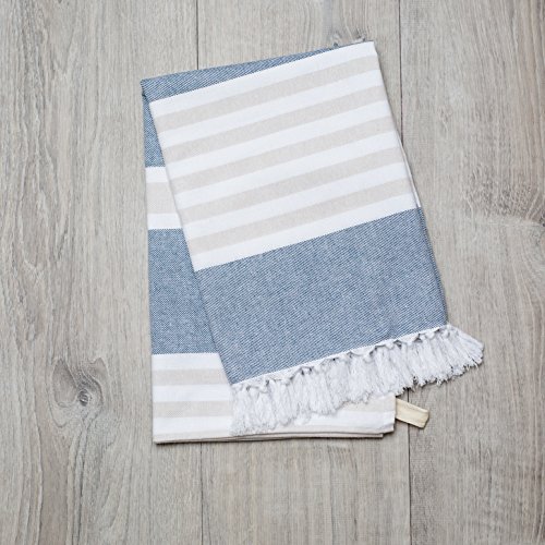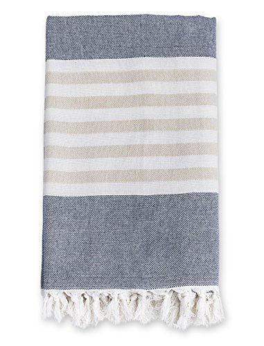 Towel is 40 x 60 inches;Includes blue towel with white and tan stripes;100% cotton;Highly absorbent and fast drying;Ideal as beach towel, bath towel, picnic blanket, wrap and much more