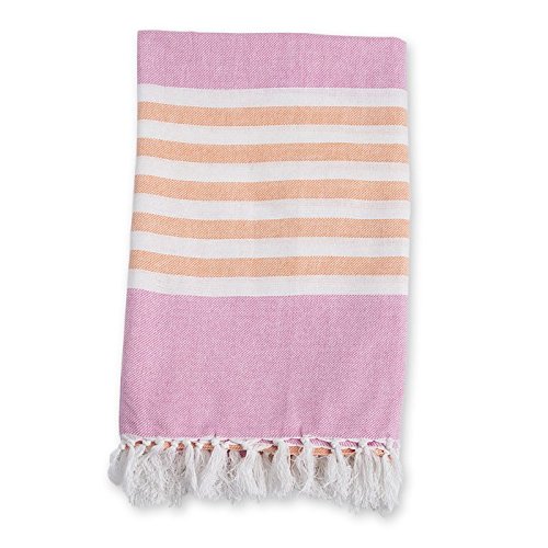 Towel is 40 x 60 inches;Includes pink towel with white and apricot stripes;100% cotton;Highly absorbent and fast drying;Ideal as beach towel, bath towel, picnic blanket, wrap and much more