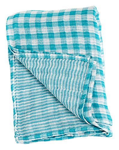 • Lulujo Baby Reversible Muslin Cotton Swaddles Blanket, Aqua, 47 x 47