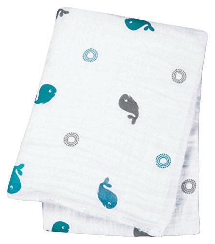 • Lulujo Baby Muslin Cotton Swaddling Blanket, Baby Whale, 47 x 47 by lulujo Baby