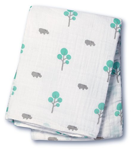 - Lulujo Baby Muslin Cotton Swaddling Blanket, Hippo/Aqua, 47" x 47"