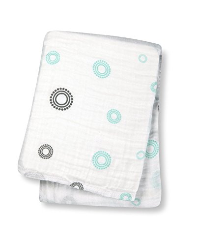 Lulujo Baby Muslin Cotton Swaddling Blanket, Circles/Aqua, 47" x 47"