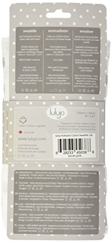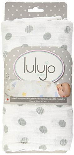 - lulujo Muslin Cotton Swaddling Blanket - Grey Polkadots