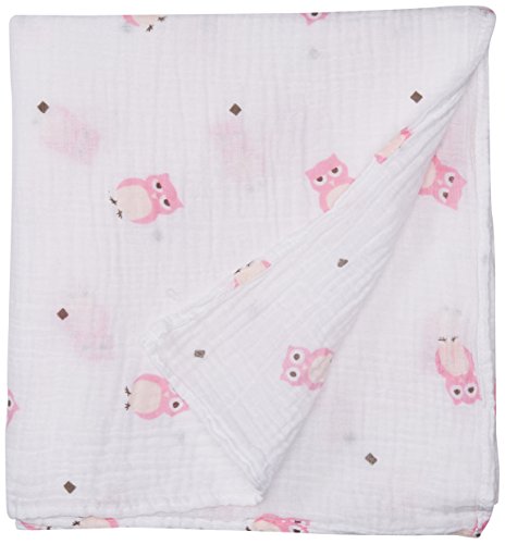 lulujo Muslin Cotton Swaddling Blanket - Pink Owl by lulujo Baby