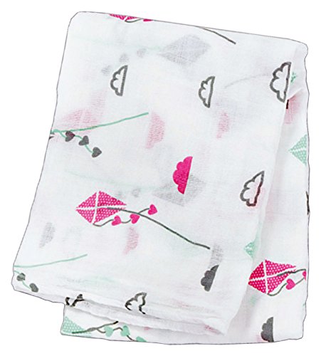 lulujo Bamboo Rayon Muslin Swaddling Blanket - Pink Kites by lulujo Baby