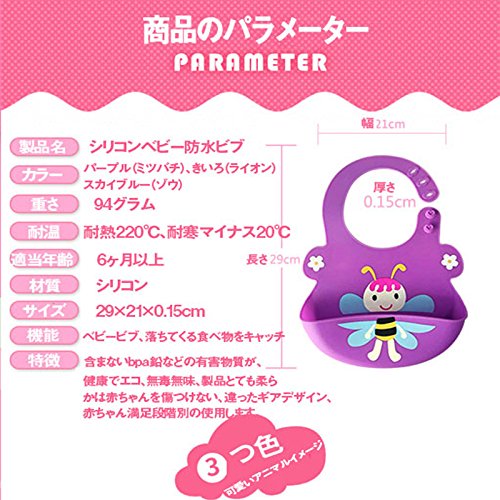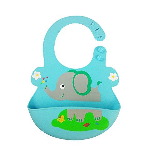 食事用スタイ エプロン ベビービブ 食品級シリコン100% 折り畳み式 防水 漏れ防止シリコーンポケット 無毒無味 食事用  食洗機で洗える 柔らかい材質 3段階に調整できる 外出携帯に便利 動物柄 3D立体設計  6歳以下の赤ちゃんに適合 (ブルー)