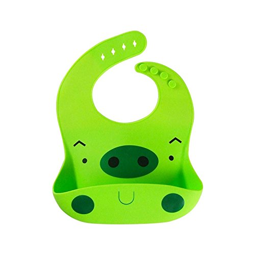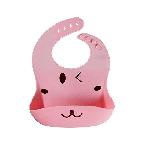 新生児食事用エプロン ベビービブ 食品級シリコン100% 折り畳み式 防水 漏れ防止シリコーンポケット 無毒無味 食事用 柔らかい材質 食事エプロン 食洗機で洗える 3段階に調整できる 持ち運びに便利 動物柄 3D立体設計  6歳以下の赤ちゃんに適合 (ピンク)