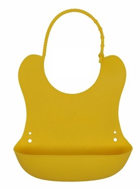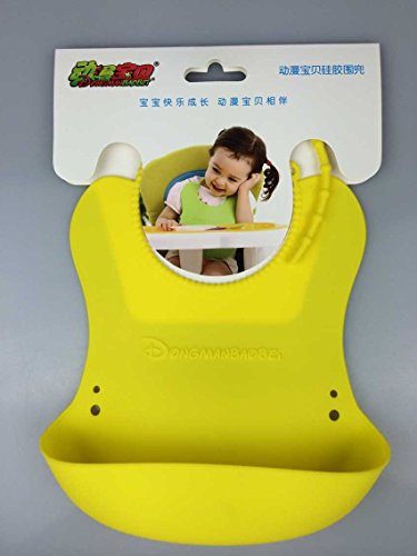食事用エプロン赤ちゃんビブ 柔らかい食品級のシリコン 折り畳み式 防水 漏れ防止シリコーンポケット 調節可能なロールアップビブ 油が落ちるスタイ無毒無味  持ち運びに便利  科学な工学デザイン     動物柄  6歳以下の赤ちゃんに適合 (きいろ)