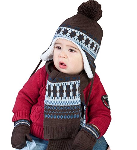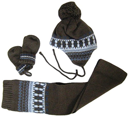 エムジュニア ニット帽子&マフラー・ミトンセット ジャガード編み 1-20-215 ブラウン