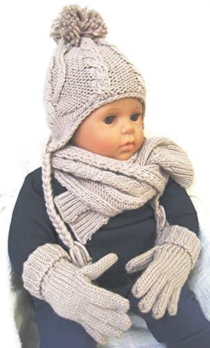 エムジュニア ニット帽子&マフラー・手袋セット ケーブル編み 1-20-191 ベージュ48cm