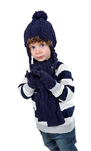エムジュニア ニット帽子&マフラー・手袋セット ケーブル編み 1-20-191 ネイビー 52cm