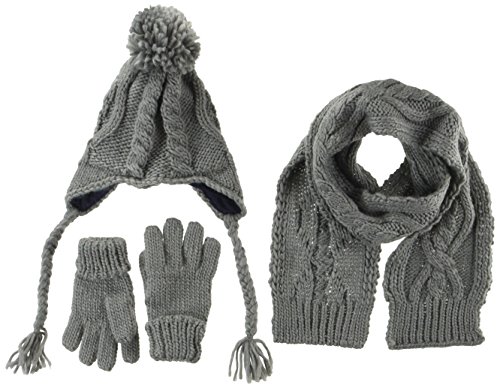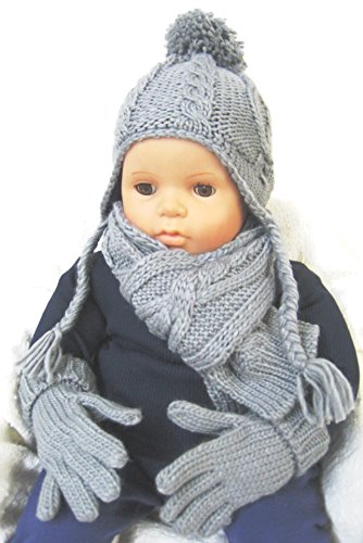 エムジュニア ニット帽子&マフラー・手袋セット ケーブル編み1-20-191 グレー 48cm
