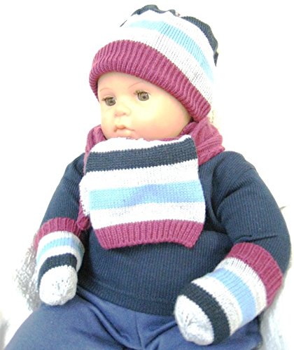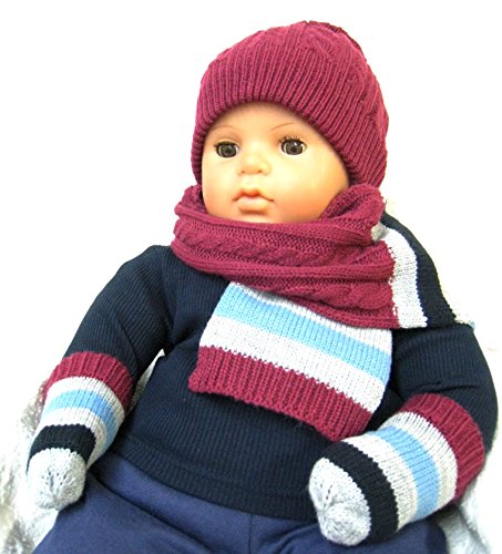 エムジュニア リバーシブルニット帽子&マフラー・ミトンセット 1-20-946 ボルドー