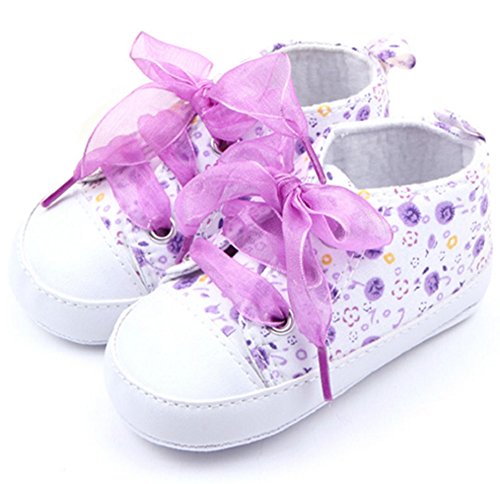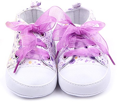 【macaroni(マカロニ)】ベビー用ファーストシューズ はじめてのくつ カワイイ花柄レースリボン (1 12cm(6-12か月), 3 パープル)