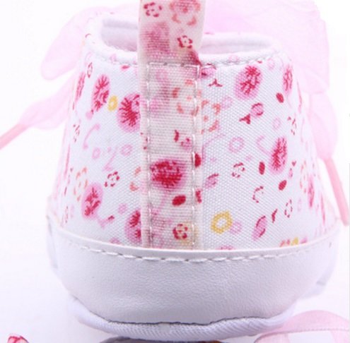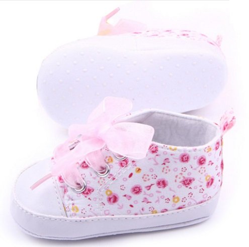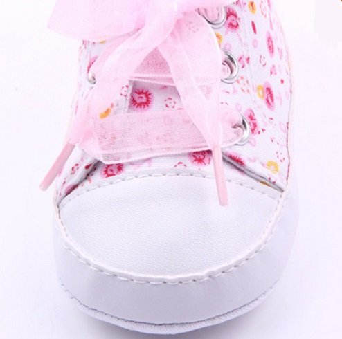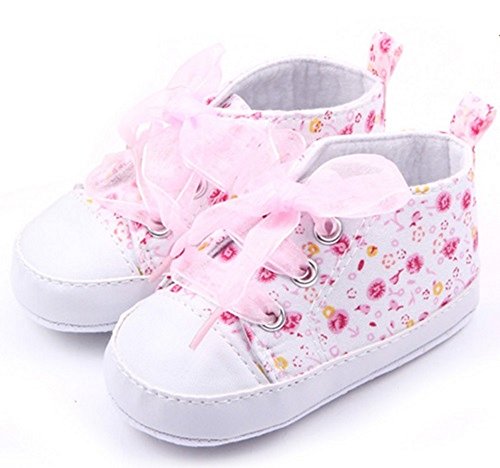 【macaroni(マカロニ)】ベビー用ファーストシューズ はじめてのくつ カワイイ花柄レースリボン (1 12cm(6-12か月), 1 ピンク)