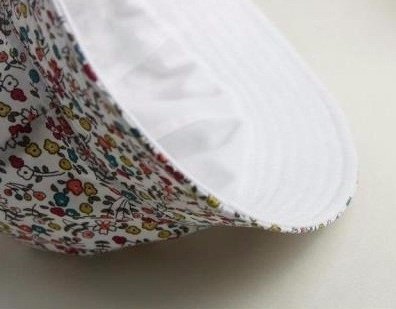 - かわいい小花のフラワープリントと無地(ホワイト)のリバーシブルのベビー用帽子です。