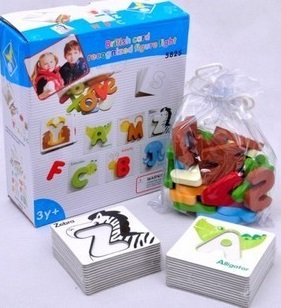 木のアルファベットをカードにはめ込んだり、アルファベット単品を並べて遊んだり、遊びながら楽しく英語の勉強。