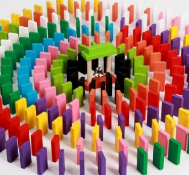 - カラフルなドミノと仕掛けのはじめてでもすぐに遊べるお得なたっぷりセット。