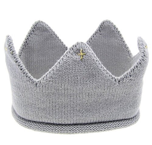 【macaroni(マカロニ)】ベビー用ニットの王冠 誕生日、記念日、ベビーアートに (3 グレー)