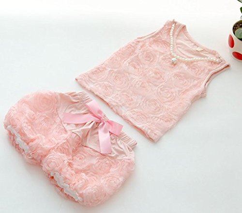macaroni(マカロニ) ベビー 女の子 カワイイ フリフリ 立体 ローズ フラワー レース ツーピースセット フェイクパールネックレス 付き (2 110cm(4T))